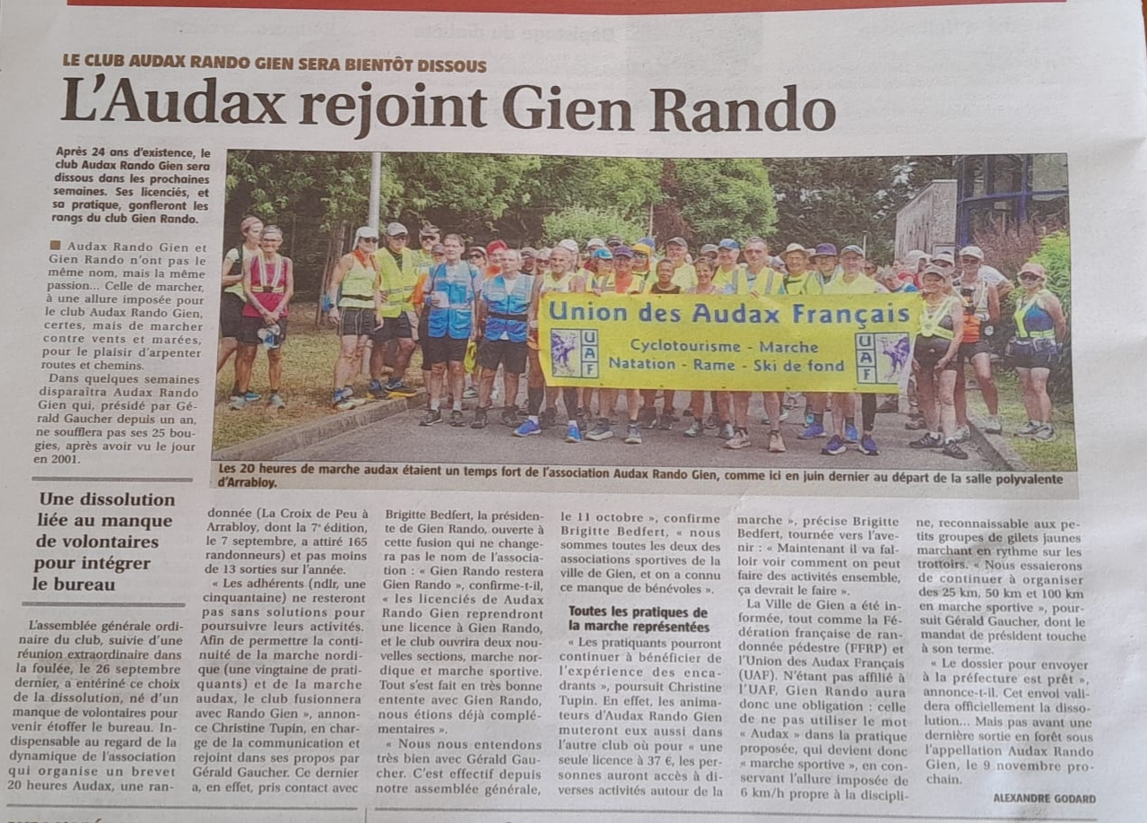 Le club AUDAX RANDO GIEN ne redémarre pas une nouvelle saison.