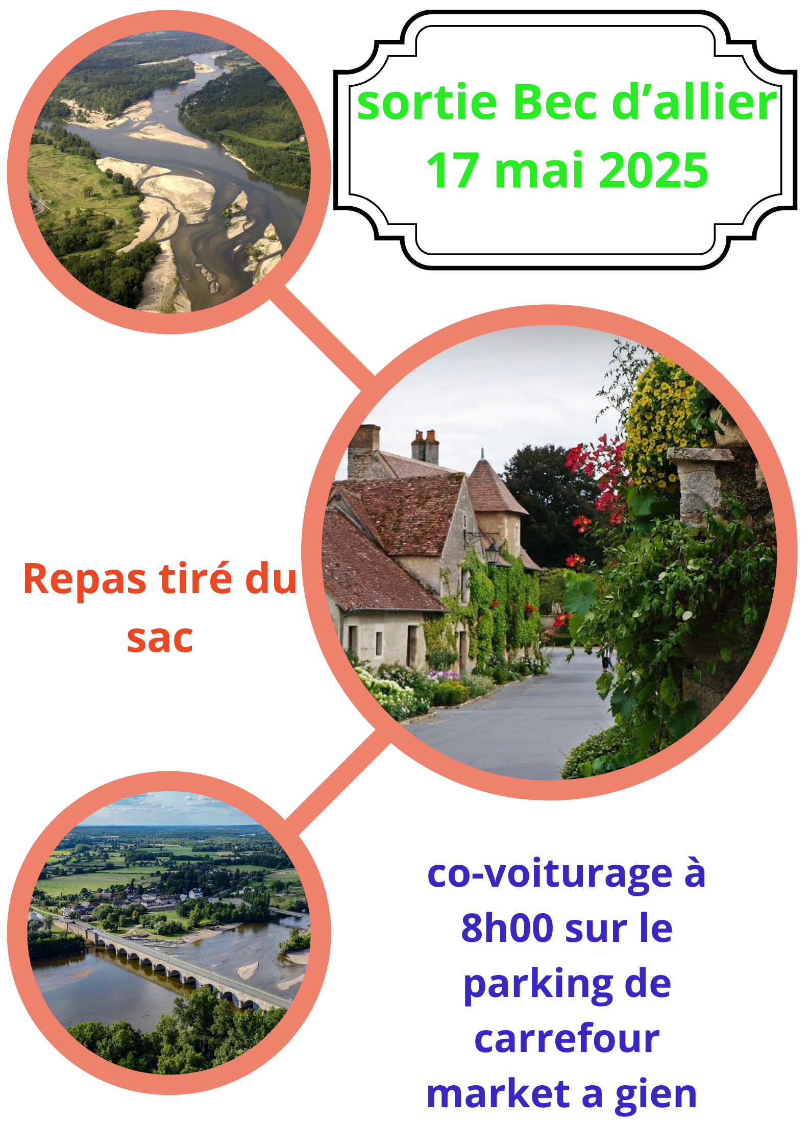 Transport en covoiturage au départ de Carrefour Market de Gien à 8h00 pour le sud de Nevers à Cuffy ou Gimouille, en fonction de la météo.